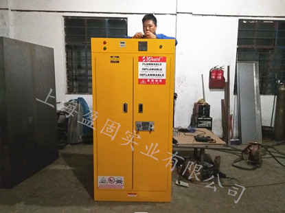 儲存柜外殼體采用雙層防火鋼板結構,柜低采用一體式設計,較大程度的增加其牢固度,內外表面先經拋除油污工藝,再經環(huán)氧樹脂粉末噴涂,烘熱固化處理.