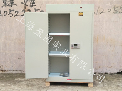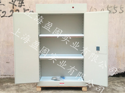 柜體整體雙層1.2mm防火鋼板結(jié)構(gòu),兩層鋼板之間為38mm的隔熱緩沖層,具有防火防爆的特點,柜內(nèi)配置的2塊可調(diào)節(jié)鍍鋅層板,可在每格6cm的距離上下自由調(diào)節(jié),組合自身所需的內(nèi)部空間;柜內(nèi)配置的3塊可移動耐腐蝕托盤,四周帶立邊,具有一定的防溢漏的效果,限制了灑落的有毒有害液體肆意流動,便于清理;柜兩側(cè)設(shè)有阻火進風(fēng)口,可根據(jù)需求打開;柜頂通風(fēng)口處,內(nèi)置一個12v,0.23A軸流風(fēng)機,可利用頂部開關(guān)手動自由啟動與關(guān)閉風(fēng)機,柜頂預(yù)留有可拆卸管道接口,便于連接通風(fēng)管道,使柜內(nèi)化學(xué)品揮發(fā)的有毒有害氣體排出,減少了柜內(nèi)有毒有害氣體的濃度,從而降低了有害氣體對操作人員的傷害,維護工作人員的健康.
