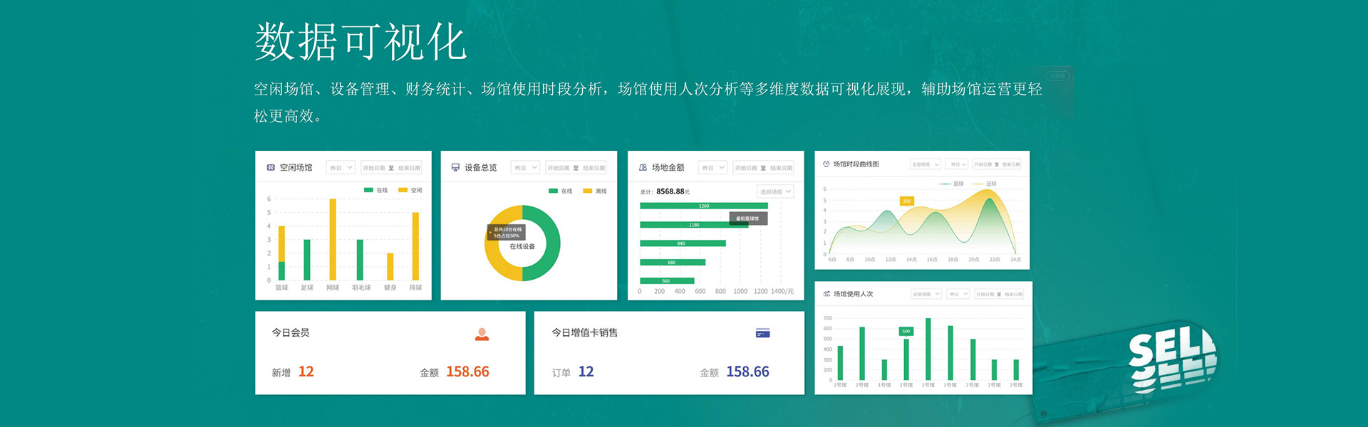 PC端后臺(tái)可實(shí)現(xiàn):客戶管理、教練管理、場(chǎng)館管理、增 值卡管理、團(tuán)課管理、財(cái)務(wù)管理、優(yōu)惠券管理、設(shè)備管理、 公告管理、系統(tǒng)管理等一系列監(jiān)管功能,并通過數(shù)據(jù)可視化一目了然,場(chǎng)館信息全掌握。